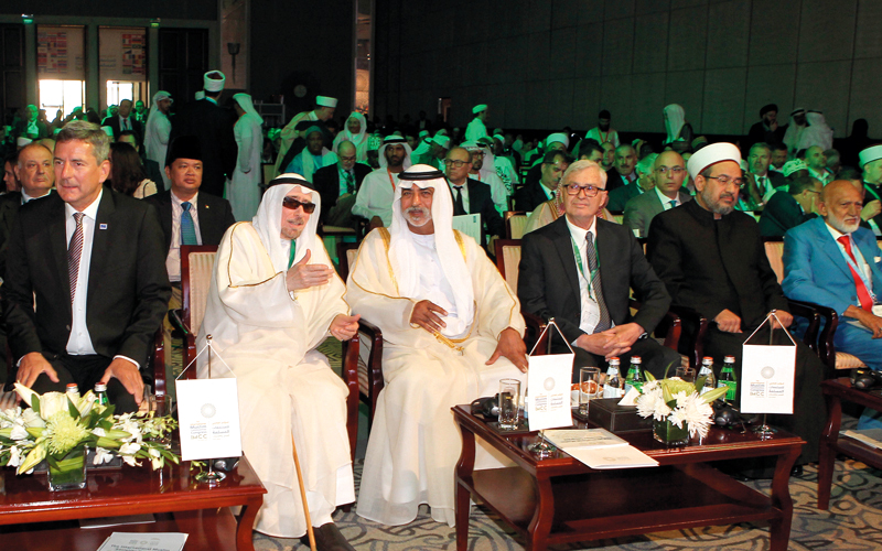 نهيان بن مبارك لدى افتتاحه فعاليات المؤتمر العالمي للمجتمعات المسلمة في أبوظبي. الإمارات اليوم