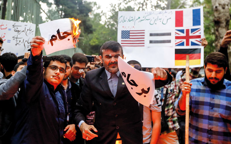 قالت وكالة «أنباء فارس» إن طلبة إيرانيين، تجمعوا خارج مبنى السفارة الأميركية السابق في طهران، أمس، للاحتجاج على قرار الرئيس الأميركي دونالد ترامب الانسحاب من الاتفاق النووي مع إيران، وردد الطلاب هتافات «الموت لأميركا»، و«مطلبنا الوحيد إحراق الاتفاق النووي»، كما أحرقوا العلم الأميركي.
