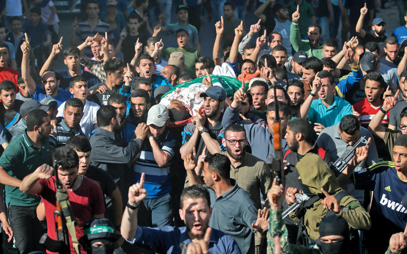 فلسطينيون يشيّعون أحد الشهداء في غزة. أ.ف.ب