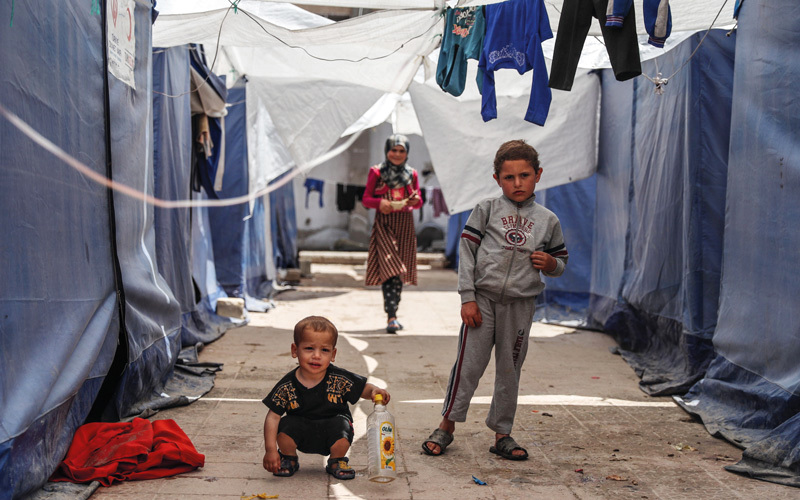 أطفال سوريون في ساحة مدرسة ببلدة الأتارب خصصت لنازحي الغوطة الشرقية. إي.بي.إيه