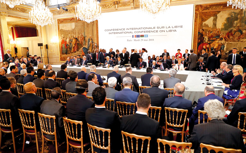 وقال في مؤتمر صحافي في باريس حضره قادة الأطراف السياسية الرئيسة في ليبيا: «نحن بحاجة إلى جهود هائلة على المستويين الأوروبي والدولي»، للتعاطي مع «مئات الآلاف» من المهاجرين الأفارقة المحتشدين على الأراضي الليبية.