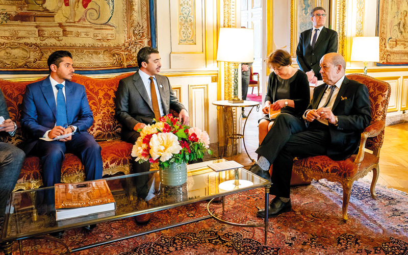 عبدالله بن زايد بحث علاقات الصداقة والتعاون المشترك بين دولة الإمارات وفرنسا مع لودريان. وام