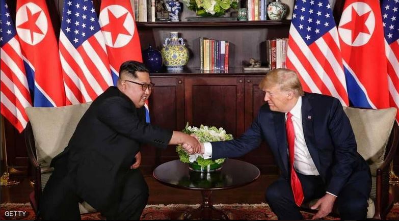 وفى مشهد لم يكن أحد ليتخيله قبل أشهر خلت، تصافح ترامب وكيم طويلا أمام إعلام البلدين قبل أن يسيرا سويا على السجادة الحمراء ويتبادلا أطراف الحديث.