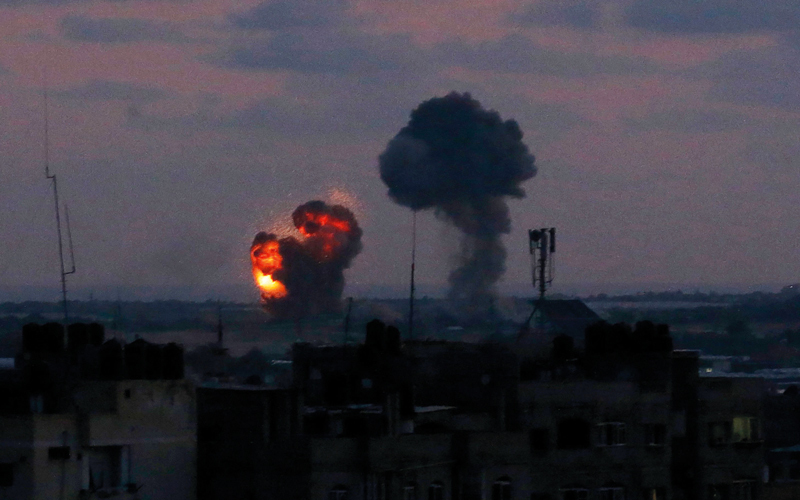 انفجار في بلدة رفح جنوب قطاع غزة بعد غارة جوية إسرائيلية. أ.ف.ب