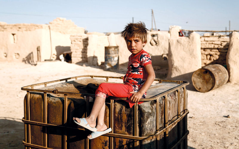 طفل نازح من بلدة منبج بشمال سورية. أ.ف.ب