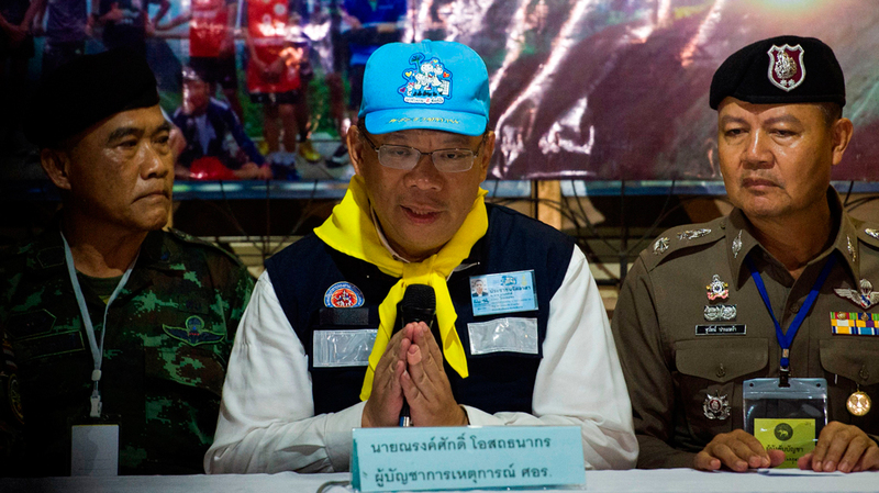 خلال الإعلان عن نجاح عملية إنقاذ أطفال الكهف في تايلاند. أ.ف.ب