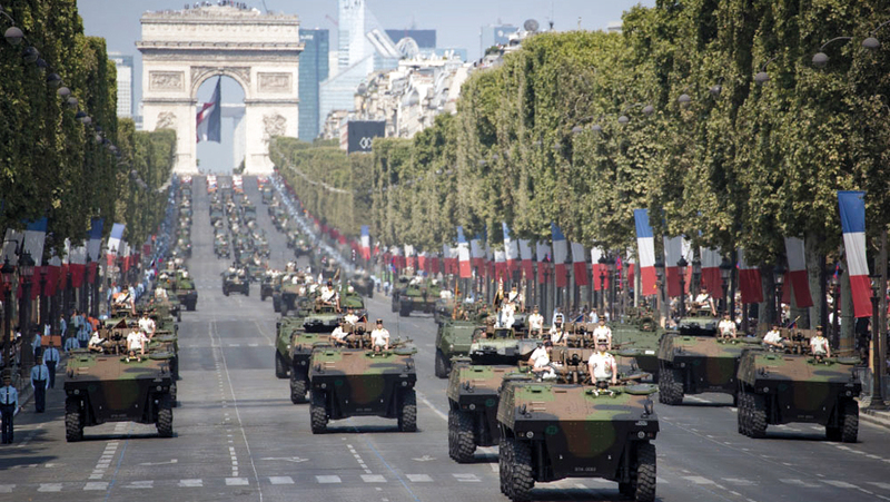وفي باريس، حلقت طائرات مقاتلة فوق العاصمة الفرنسية، أمس، في إطار استعراض عسكري ضخم يظهر «القوة المدروسة»، بمناسبة اليوم الوطني في فرنسا. وتحت شمس ساطعة، افتتح ماكرون للمرة الثانية - منذ انتخابه في مايو 2017 - الحفل عبر استعراض الجيوش بجوار رئيس الأركان على الشانزليزيه واقفاً في «عربة قيادة»، ترجل منها على الجادة الفرنسية قبل أن يصعد إلى المنصة الرئاسية في ساحة الكونكورد. حضر الاستعراض الآلاف حاملين أعلاماً فرنسية صغيرة وزعها الجيش.