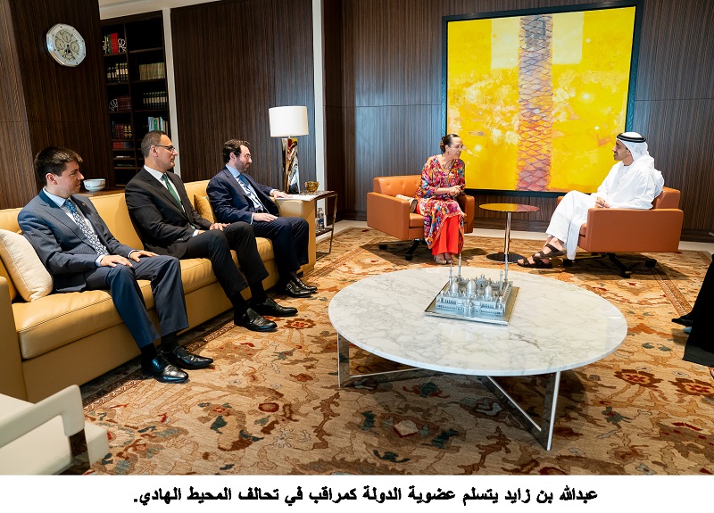 تسلم سمو الشيخ عبدالله بن زايد آل نهيان وزير الخارجية والتعاون الدولي عضوية الدولة كمراقب في تحالف المحيط الهادي.