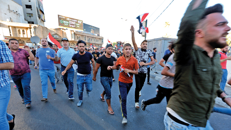 جانب من تظاهرات الاحتجاج في ميدان التحرير وسط بغداد. إي.بي.إيه