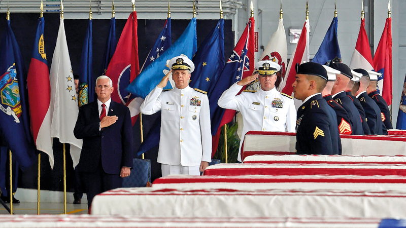 وأشاد ترامب أيضاً على «تويتر»، في وقت سابق، «بالمراسم بالغة الجمال» التي أجريت في هاواي لاستقبال الرفات، وشارك فيها نائبه مايك بنس.