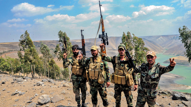جنود من قوات النظام بالقرب من سد الوحدة على الحدود السورية الأردنية. إي.بي.إيه