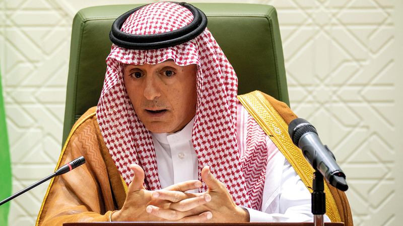 الجبير خلال مؤتمر صحافي عقده بالرياض تحدث فيه عن دراسة خطوات إضافية في ما يتعلق بالموقف الكندي. أ.ف.ب