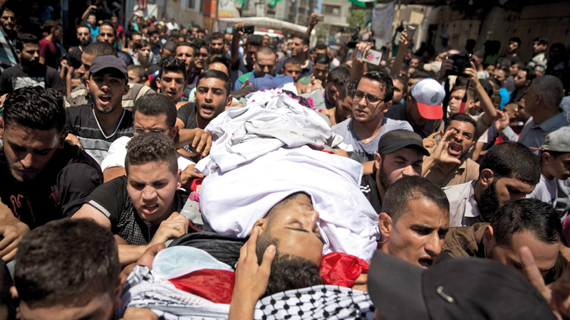 فلسطينيون يشيّعون جثمان الشهيد عبدالله القطاتي في مدينة رفح. أ.ب
