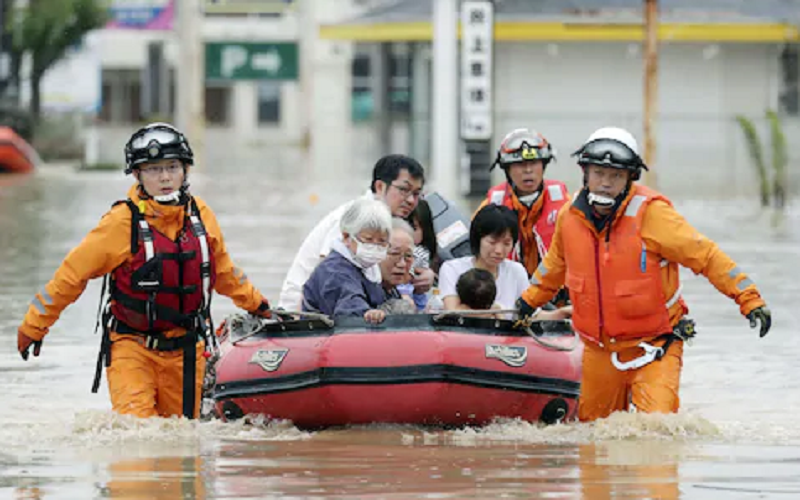 اصدرت السلطات اليابانية أوامر بإجلاء آلاف الأشخاص من منازلهم ، اليوم الجمعة بسبب فيضانات وانهيارات أرضية ناجمة عن هطول غزير للأمطار في شمال ووسط البلاد.