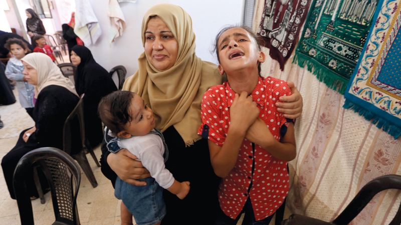 أقارب الشهيد صهيب عبدالسلام خلال تشييعه في خانيونس جنوب غزة. رويترز