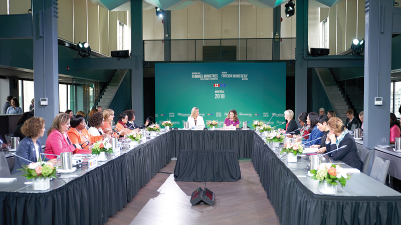 وجمع اللقاء، الذي بدأ الجمعة الماضية واستمر ليومين، أكثر من نصف وزيرات الخارجية في العالم، وتناول مجموعة من الموضوعات، مثل تفادي نشوب النزاعات وتعزيز الديمقراطية ومكافحة العنف ضد النساء. وقالت وزيرة الخارجية الكندية، كريستيا فريلاند، إن «هذا الاجتماع يمثل فرصة تاريخية»، معلنة استحداث منصب سفير للنساء والسلام والأمن، هو الأول من نوعه في كندا.