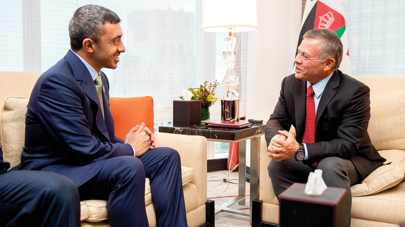 كما استقبل الملك عبدالله الثاني، في مقر إقامته في نيويورك، سمو الشيخ عبدالله بن زايد آل نهيان، وذلك في إطار التنسيق والتشاور بين البلدين حيال مختلف القضايا والتطورات الإقليمية.