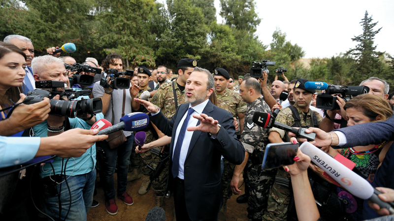 جبران باسيل خلال المؤتمر الصحافي أمس. رويترز
