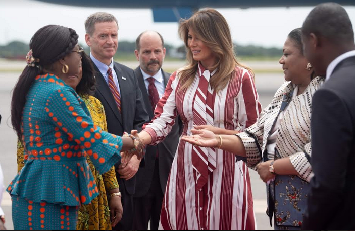 وهي المرة الأولي التي تزور فيها القارة الأفريقية، ورغم أن زوجها دونالد ترامب وصف في الآونة الأخيرة إفريقيا بانها «أجمل جزء من العالم من نواح عدة». لكن رغم هذه العبارة، فان الرئيس لم يبد أبدا اهتماما بهذه القارة منذ وصوله إلى السلطة.