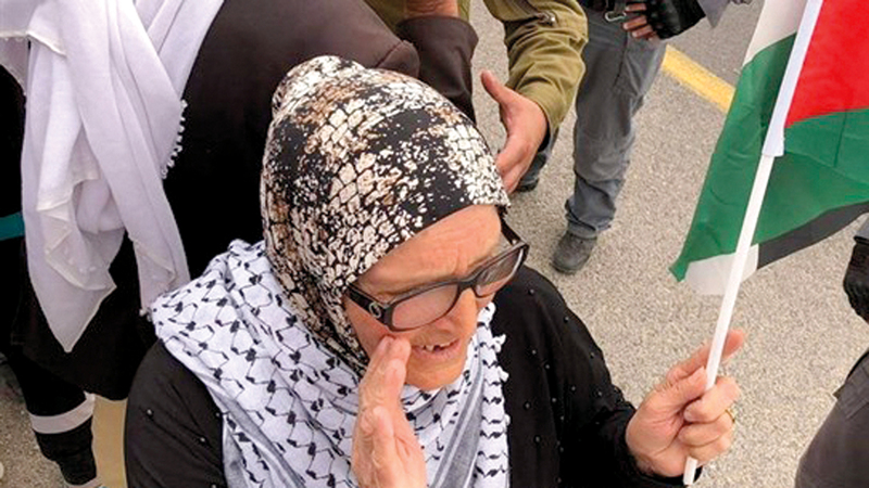 جانب من المسيرة السلمية على مدخل الخان الأحمر. معا