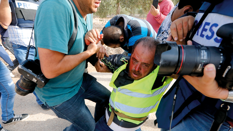 الاحتلال أصاب مصور وكالة الأنباء الفرنسية بقنبلة غاز في رأسه بنابلس. إي.بي.إيه