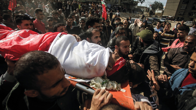 خلال تشييع الشهيد محمد عودة في بيت لاهيا. إي.بي.إيه