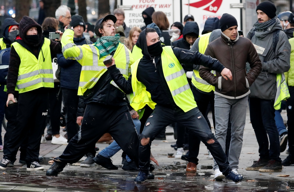 وفي نهاية الاحتجاج وصل مئات عدة من المحتجين المرتدين للسترات الصفراء، التي يتعين على كل سائقي المركبات الاحتفاظ بها في سياراتهم، عند مكتب رئيس الوزراء البلجيكي شارل ميشيل. وقام عشرات، كثير منهم ملثمون، برشق رجال الشرطة بالحجارة والمفرقعات ولافتات الطرق ورد الضباط بإطلاق مدافع المياه والغاز المسيل للدموع.