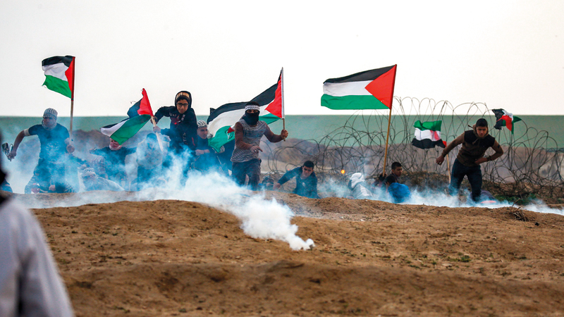 قوات الاحتلال تطلق قنابل الغاز المسيل للدموع على متظاهرين فلسطينيين شرق مدينة غزة. أ.ف.ب