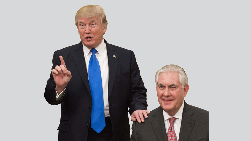 ترامب مع تيلرسون بعدما أدى الأخير اليمين كوزير للخارجية الأميركية في الأول من فبراير 2017. أرشيفية