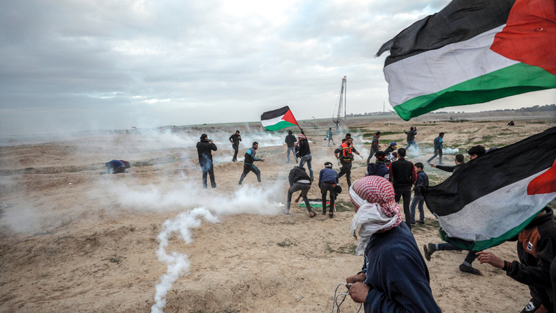 مواجهات بين قوات الاحتلال والفلسطينيين في غزة أول من أمس. إي.بي.إيه