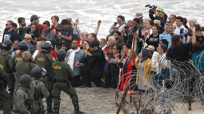اعتقلت شرطة مكافحة الشغب الأميركية 32 من الزعماء الدينيين والنشطاء عند السياج الحدودي، بعضهم كان يرتدي قمصاناً كتب عليها «الحب لا يعرف الحدود»، خلال تظاهرهم لدعم أفواج المهاجرين القادمين من أميركا الوسطى.