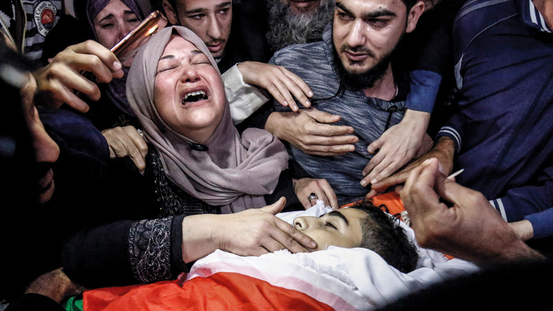 خلال تشييع الشهيد الفتى محمد الجحجوح في مخيم الشاطئ غرب غزة. أ.ف.ب