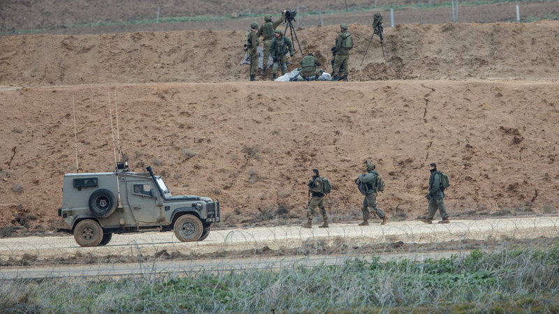 جنود إسرائيليون على الحدود مع غزة حيث انتهى الاحتلال من بناء سياج بحري مع القطاع. أ.ب