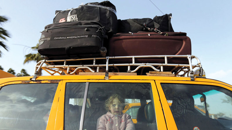 طفلة فلسطينية تنظر من نافذة سيارة العائلة بعد عبورها معبر رفح إلى غزة. رويترز
