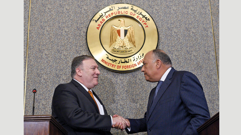 وكان بومبيو التقى، في وقت سابق أمس، الرئيس المصري، عبدالفتاح السيسي، في قصر الرئاسة بالقاهرة، وذلك في إطار جولة شرق أوسطية بدأها الوزير الأميركي الثلاثاء من الأردن.