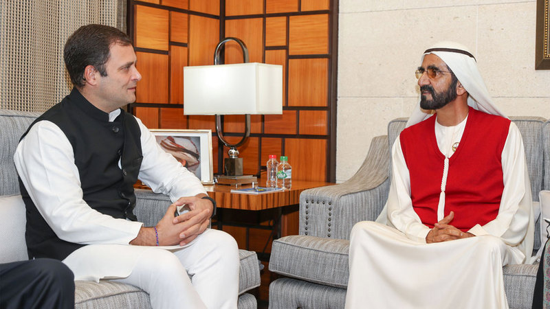 استقبل صاحب السمو الشيخ محمد بن راشد آل مكتوم، نائب رئيس الدولة رئيس مجلس الوزراء حاكم دبي، في دبي أمس، بحضور سمو الشيخ مكتوم بن محمد بن راشد آل مكتوم، نائب حاكم دبي، رئيس حزب المؤتمر الوطني في الهند، راهوول غاندي.وقد تبادل سموه والضيف الحديث حول علاقات الصداقة التاريخية، التي تربط الإمارات والهند على المستويين الرسمي والشعبي، والتأكيد على أهمية الحفاظ على هذه العلاقات المميزة، من خلال مد جسور جديدة للتواصل بين البلدين على مختلف المستويات، وذلك بما يعود بالخير والمنفعة على شعبيهما الصديقين.