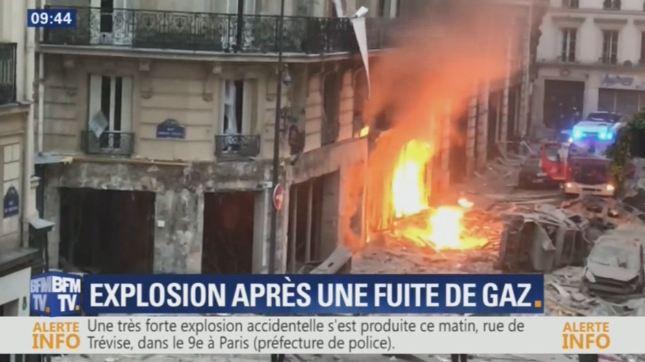 وسحب رجال اطفاء المصابين من النوافذ وأخلوا السكان بينما تصاعد الدخان من موقع الانفجار في مخبز بمبنى في شارع تريفيسي في الدائرة التاسعة قرب كاتدرائية القلب المقدس بشمال وسط باريس.