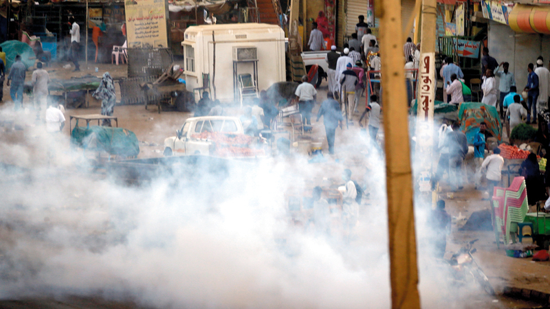 الشرطة تفرّق تظاهرة في الخرطوم بالغاز المسيل للدموع. رويترز