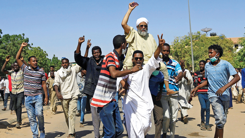 متظاهرون في الخرطوم أول من أمس. رويترز