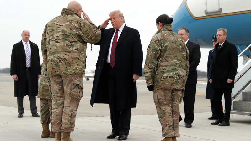 ترامب في قاعدة دوفر الجوية لاستقبال جثامين قتلى هجوم منبج. أسوشيتد برس