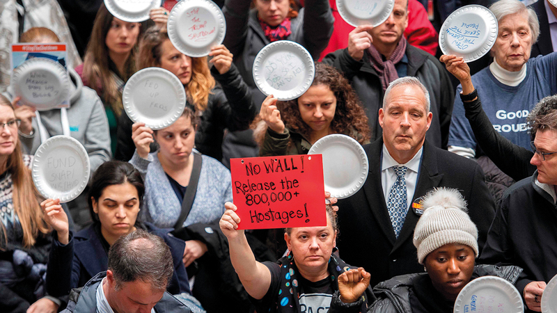 موظفون فيدراليون يحتجون على الإغلاق الحكومي. أ.ف.ب