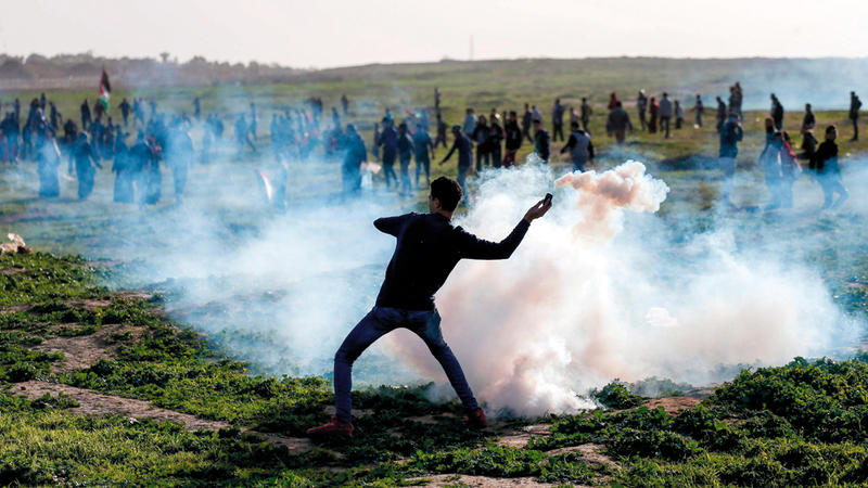 جانب من المواجهات مع قوات الاحتلال شرق قطاع غزة. أ.ف.ب