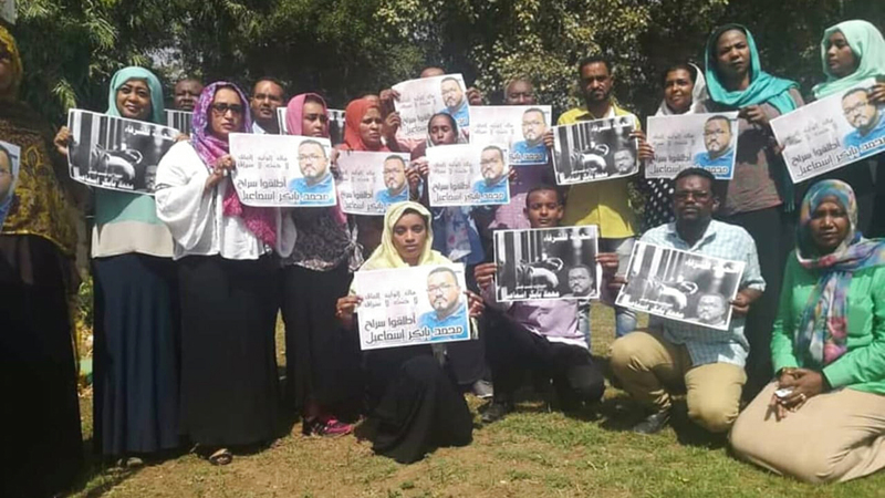 وسلم الصحافيون مذكرة احتجاجية لرئيس اتحاد الصحافيين الصادق الرزيقي، إثر اعتقال بابكر منذ نحو أسبوعين، دون توجيه تهمة محددة له.