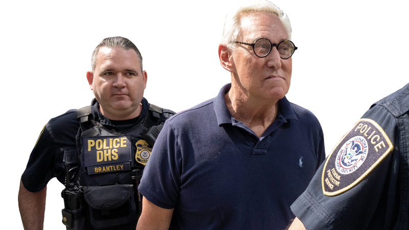 روجر ستون صديق ترامب ومستشاره الانتخابي أثناء القبض عليه. أرشيفية