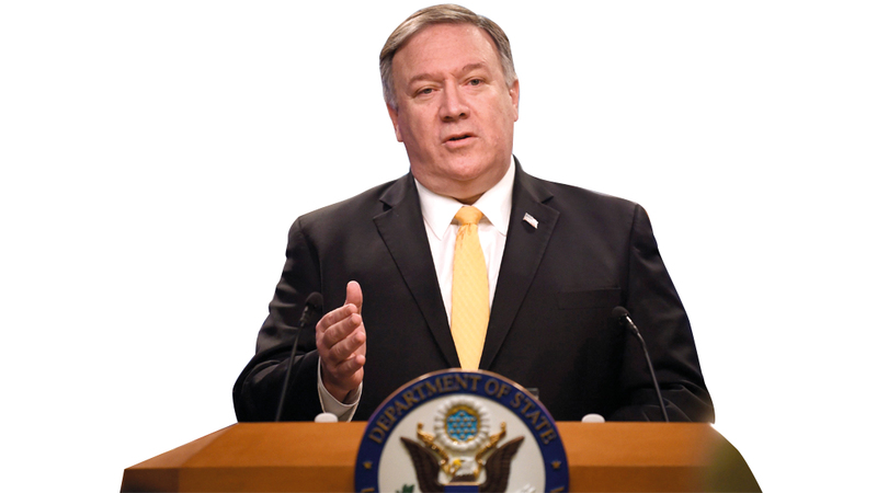 بومبيو خلال إعلان القرار الأميركي حول الصواريخ النووية. أ.ف.ب