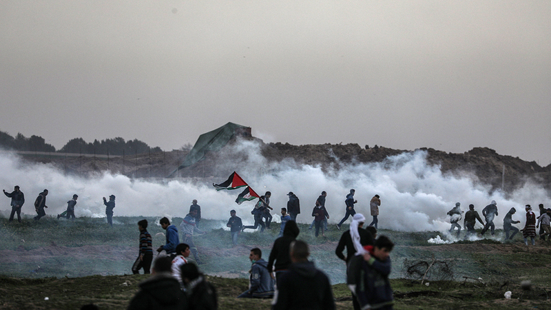جانب من المواجهات الفلسطينية مع قوات الاحتلال الإسرائيلي على حدود غزة. إي.بي.إيه