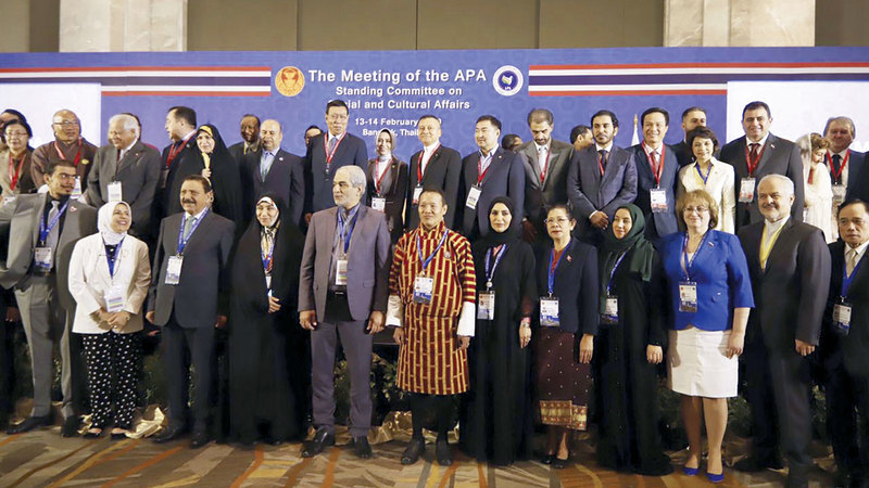 شاركت الشعبة البرلمانية للمجلس الوطني الاتحادي في اجتماعات اللجنة الدائمة المعنية بالشؤون الاجتماعية والثقافية في الجمعية البرلمانية الآسيوية، التي انطلقت في العاصمة التايلاندية بانكوك، أول من أمس، وتستمر إلى غد.