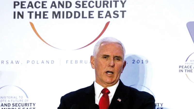 أكد نائب الرئيس الأميركي، مايك بنس، أمس، أن إيران تمثل أكبر تهديد للسلم والأمن في الشرق الأوسط، وأن نظامها هو أكبر ممول للإرهاب بالعالم، وفيما طالب بنس الحلفاء الأوروبيين بالانسحاب من الاتفاق النووي مع طهران، محذراً من مزيد من العقوبات الأميركية عليها، أكد وزير الخارجية الأميركي، مايك بومبيو، أن مواجهة إيران أمر أساسي، لتحقيق السلام في الشرق الأوسط، مدافعاً بذلك عن تصريح مثير للجدل، صدر عن رئيس الوزراء الإسرائيلي، بنيامين نتنياهو.