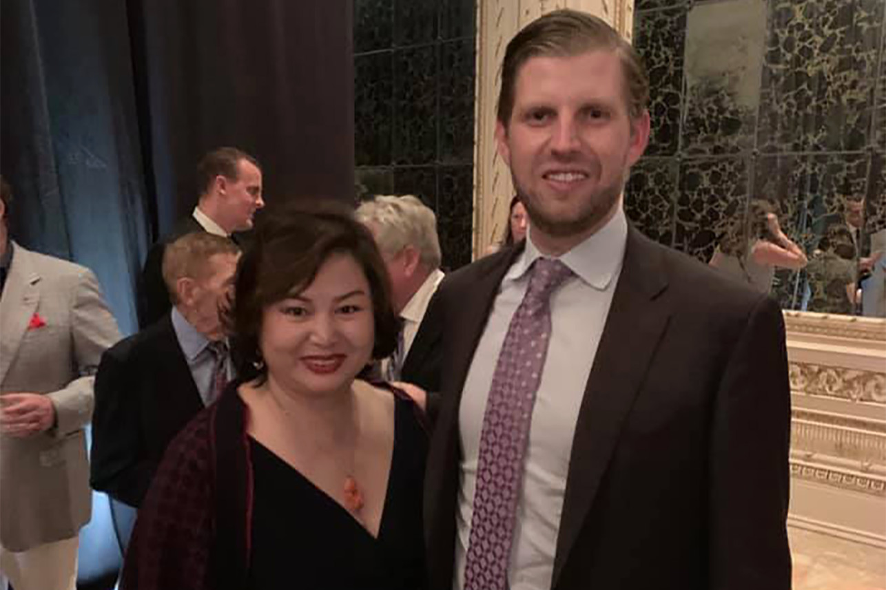 ظهر الرئيس الأميركي دونالد ترامب، هو ونجليه، ترامب جونيور وإريك ترامب، في صورة "سيلفي" مع سيندي يانغ (45 عاماً)، وهي سيدة أعمال صينية أسست العديد من المنتجعات الصحية ونوادي التدليك في فلوريدا.