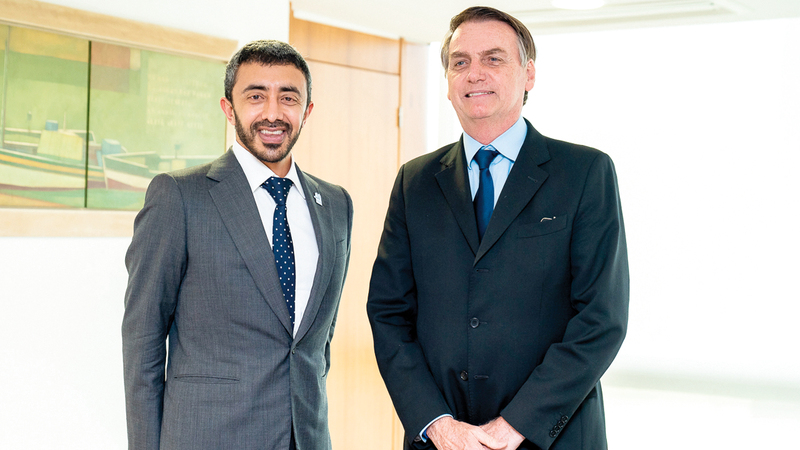استقبل رئيس جمهورية البرازيل جايير بولسونارو، أمس، سمو الشيخ عبدالله بن زايد آل نهيان وزير الخارجية والتعاون الدولي، وذلك في إطار الزيارة الرسمية التي يقوم بها سموه إلى البرازيل.